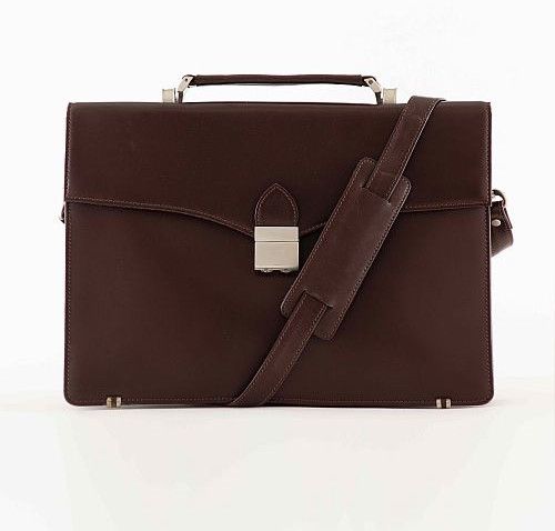 Unisex Reddish Brown Leather Portfolio Bag